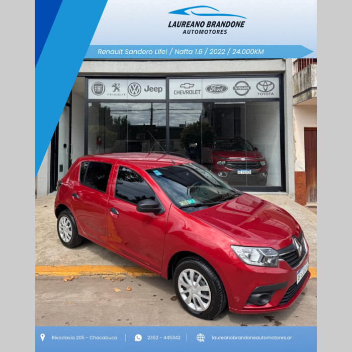 RECOMENDADOS Toro Freedom AT Fiat 🚗 FIAT Toro Freedom AT 📅 Año: 2021 📍 56.000 km | Nafta ⚙️ Motor 1.8 | Caja automática (AT) ✨ Pickup cómoda, versátil y con gran presencia. Ideal para el día a día y también para el trabajo, combinando espacio, tecnología y confort de manejo. 🛻 Versión Freedom: excelente equipamiento en seguridad y confort, con la practicidad de una caja amplia y buen despeje del suelo. 📌 Rivadavia 205 – Chacabuco 💰 Financiación disponible | Tomamos tu usado 📞 Consultas al 2352 445342 Consultar EcoSport SE 1.5 Ford 🚗 FORD EcoSport SE 1.5 📅 Año: 2020 📍 53.000 km | Nafta + GNC ⚙️ Motor 1.5 | Caja manual (MT) ✨ SUV moderna, cómoda y económica gracias al equipo de GNC. 📌 Rivadavia 205 – Chacabuco 💰 Financiación disponible | Tomamos tu usado Consultar Sandero Life Renault 🚗 Renault Sandero Life – 2022 Motor 1.6 Nafta 24.000 km Aire acondicionado, dirección asistida, levantavidrios, cierre centralizado y pantalla multimedia. Muy poco uso, excelente estado. 📍 Rivadavia 205 – Chacabuco 📞 2352 445342 Tomamos tu usado | Financiación disponible Consultar Renegade Sport 1.8 Jeep 🚙 JEEP Renegade Sport 1.8 📅 Año: 2018 📍 110.000 km | Nafta ⚙️ Motor 1.8 | Caja manual (MT) ✨ SUV robusta, cómoda y segura. Ideal para ciudad y ruta, con el estilo inconfundible de Jeep. 📌 Rivadavia 205 – Chacabuco 💰 Financiación disponible | Tomamos tu usado 📞 Consultas al 2352 445342 Consultar