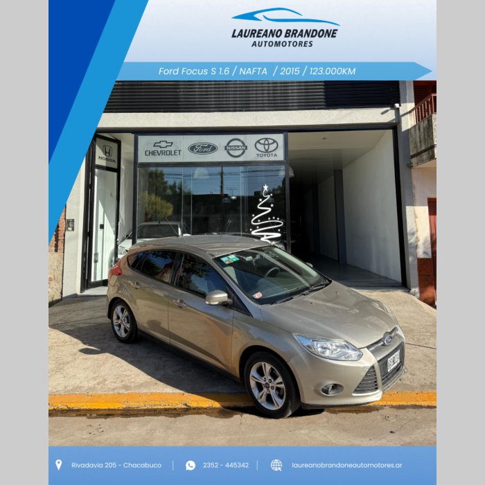 FORD FOCUS S 1.6 📅 Año: 2015 📍 123.000 km | Nafta ⚙️ Motor 1.6 | Caja manual (MT) ✨ Compacto, económico y muy ágil para ruta. 📌 Rivadavia 205 – Chacabuco 💰 Financiación disponible | Tomamos tu usado 📞 Consultas al 2352 445342 💬 También por mensaje directo