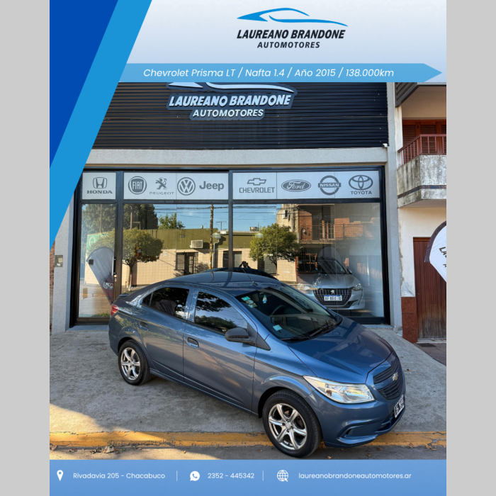 🚗 Chevrolet Prisma LT 📅 Año: 2015 | 138.000 km | Nafta - GNC ⚙️ Motor 1.4 | Caja manual ✨ Sedán cómodo y económico, pensado para uso diario y viajes. 🚙 Cuenta con 4 cubiertas nuevas y GNC, listo para usar. 📌 Rivadavia 205 – Chacabuco 💰 Financiación disponible | Tomamos tu usado 📞 Consultas al 2352 445342