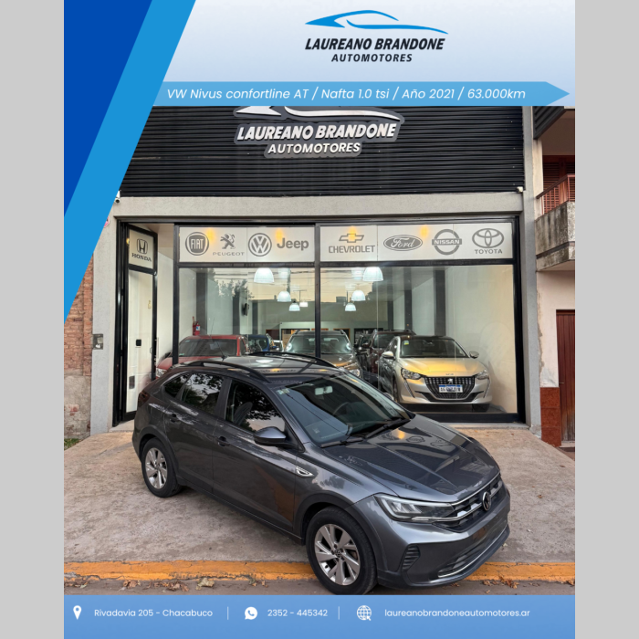🚗 Volkswagen Nivus Comfortline 1.0 TSI 📅 63.000 km | Nafta ⚙️ Motor 1.0 TSI | Caja automática ✨ Diseño moderno, eficiente y con buen nivel de equipamiento. Ideal para ciudad y ruta. 🚙 Confort de manejo y tecnología que acompañan el uso diario. 📌 Rivadavia 205 – Chacabuco 💰 Financiación disponible | Tomamos tu usado 📞 Consultas al 2352 445342