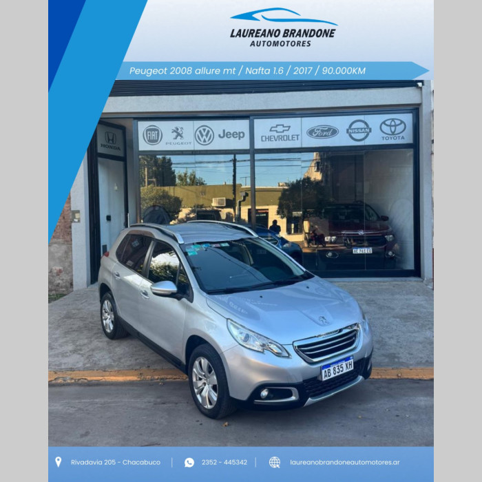 🚗 Peugeot 2008 Allure – 2017 Motor 1.6 Nafta 90.000 km Climatizador automático, pantalla táctil, cámara de retroceso, control de velocidad crucero, levantavidrios y cierre centralizado. Versión Allure, muy completa. 📍 Rivadavia 205 – Chacabuco 📞 2352 445342 Tomamos tu usado | Financiación disponible