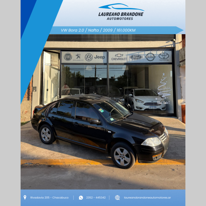 🚗 VW BORA 2.0 MT 📅 Año: 2009 📍 161.000km | Muy buen estado ⚙️ Motor 2.0 | Caja manual ✨ Confort, seguridad, ideal para ruta y ciudad. 📌 Rivadavia 205 – Chacabuco 💳 Financiación a medida | Tomamos tu usado 📲 Consultas al 2352 445342 📩 También por mensaje directo.
